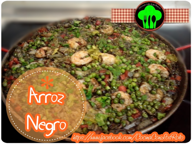 Sofreímos en una paellera con aceite de oliva los ajos, la cebolla, los tomates y el pimiento rojo hasta pochar, añadimos los calamares limpios y en trozos y cocinamos por unos minutos, luego le agregamos la tinta y lo dejamos al fuego, sin tapar. Añadimos el arroz y removemos mientras se fríe un poco, vertemos el vino