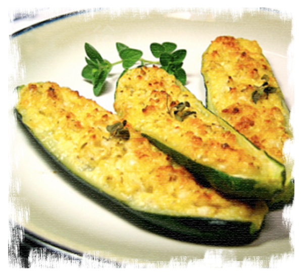 En una olla cocer los calabacines enteros por 10 min y cortarlos en dos, longitudinal y poner en una bandeja, sin semillas, preparada para hornear. En otra olla cocer las papas sin piel por 15 min y colocar a un lado de los calabacines en la misma bandeja.