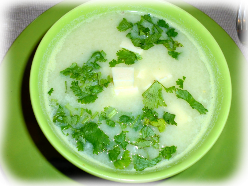 granos.Incorporar el pollo y los vegetales licuados al caldo,