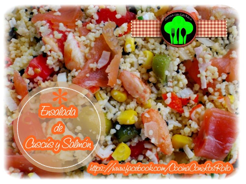 En un bowl agregar el cuscús, añadir el salmón, langostinos, tomate, cebolla, pepinillos y mezclar con todo los demás ingredientes