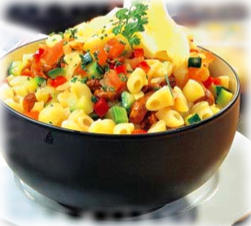 Mezclamos la pasta con las verduras ya frías y el atún claro desmenuzado,