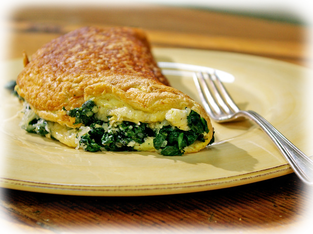 Cuando el centro se cocine, doblamos la omelette con una espátula, dejamos que se dore por ambos lados antes de servir. (Hacer lo mismo para el otro omelette).