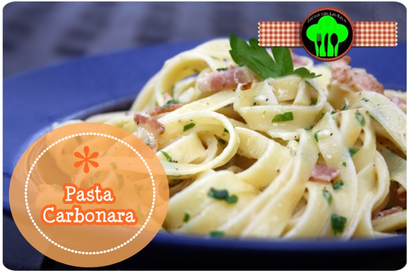 Primero cortamos la cebolla en dados, en un sarten con poco de aceite en una sartén, cocinamos la cebolla, añadimos el bacón cortado en dados. En otra olla empezamos a hacer la pasta (larga) al hervir añadimos los tallarines o spagettis. Cocemos de 7 a 10 minutos y sacamos al dente (durita).