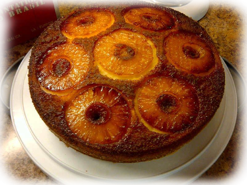 Aparte ,en una tortera previamente enmantequillada preparar un caramelo ( Azúcar y agua) y colocar las rodajas de las piñas, agregar la mezcla y hornear a 350* por 1 hora.