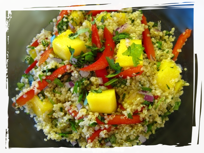 Calentamos el aceite en una cazuela y sofreímos el ajo. Añadimos la quinoa y removemos. Incorporamos el agua, laurel y sal. Subimos el fuego y cuando rompa a hervir, bajamos a fuego medio/lento y cocemos hasta que se consuma el agua.