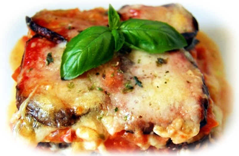 En una fuente para hornear esparcimos uniformemente parte de la salsa de carne, luego  una capa de rodajas de berenjenas y cubrimos con la mitad de la mezcla de quesos,  la salsa bechamel y las hojas de albahaca fresca. Volvemos a repetir las capas hasta que se hayan terminado.  Por último, cubrimos con la salsa de tomate restante y la bechamel, espolvoreamos con el queso parmesano reservado.