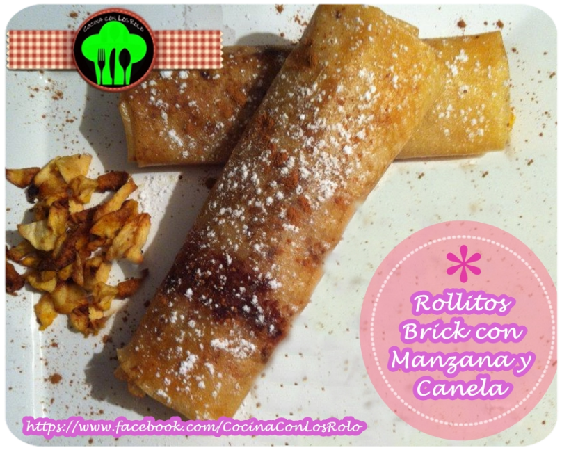 Extendemos una lámina de pasta brick de unos 30 cm y la pincelamos con aceite o mantequilla derretida. Le añadimos las manzanas y espolvoreamos azúcar morena, canela y almendras y enrollamos formando un rulo o rollito.